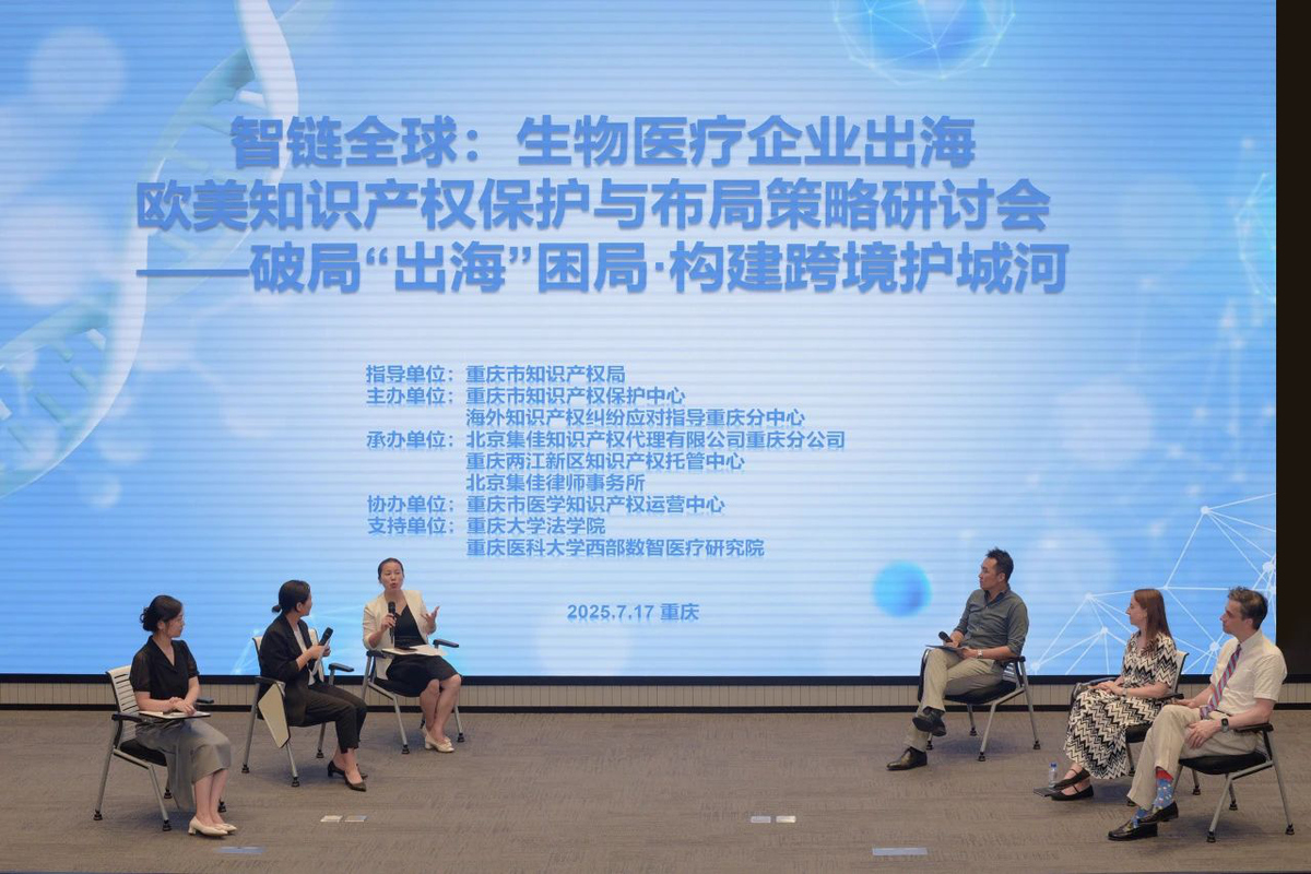 2025年7月17日,由重庆市知识产权保护中心、海外知识产权纠纷应对指导重庆分中心主办,北京集佳知识产权代理有限公司重庆分公司联合重庆两江新区知识产权托管中心、海星体育直播共同承办的 “生物医疗企业出海欧美知识产权保护与布局策略研讨会” 在渝顺利召开。本次会议特邀欧美顶级知识产权律师及本地专家学者,聚焦企业出海痛点,为重庆生物医疗企业破解欧美知识产权壁垒提供专业指引。
